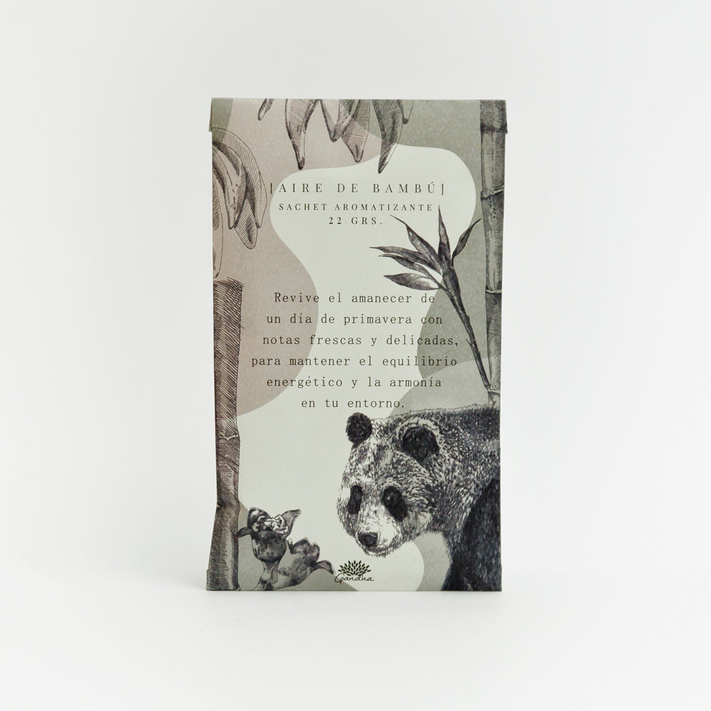 [ Práctico sachet hecho de papel que propaga por sí solo un aroma sutil y natural a Aire de bambú para aromatizar y decorar tus armarios, depósitos o cualquier rincón de tu hogar. Este aroma compuesto de aceite esencial de bambú ofrece un ambiente fresco, ligero y agradable ya que estimula el equilibrio energético y la armonía ]